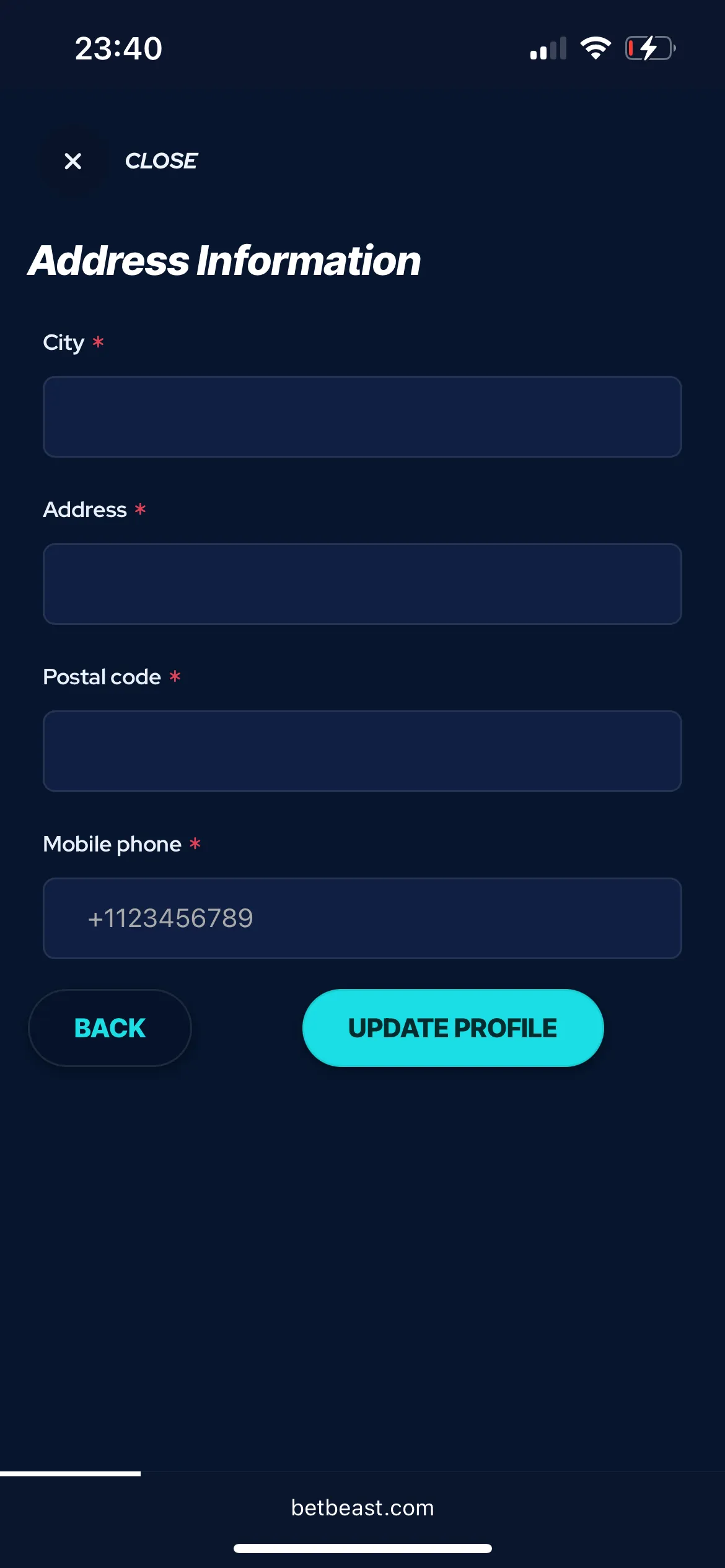 To create an account, claim bonuses and play for real money, every Kiwi player must sign up. Proceed to the BetBeast Casino official site and find the blue button Join Now. For an account set up, provide the following details: