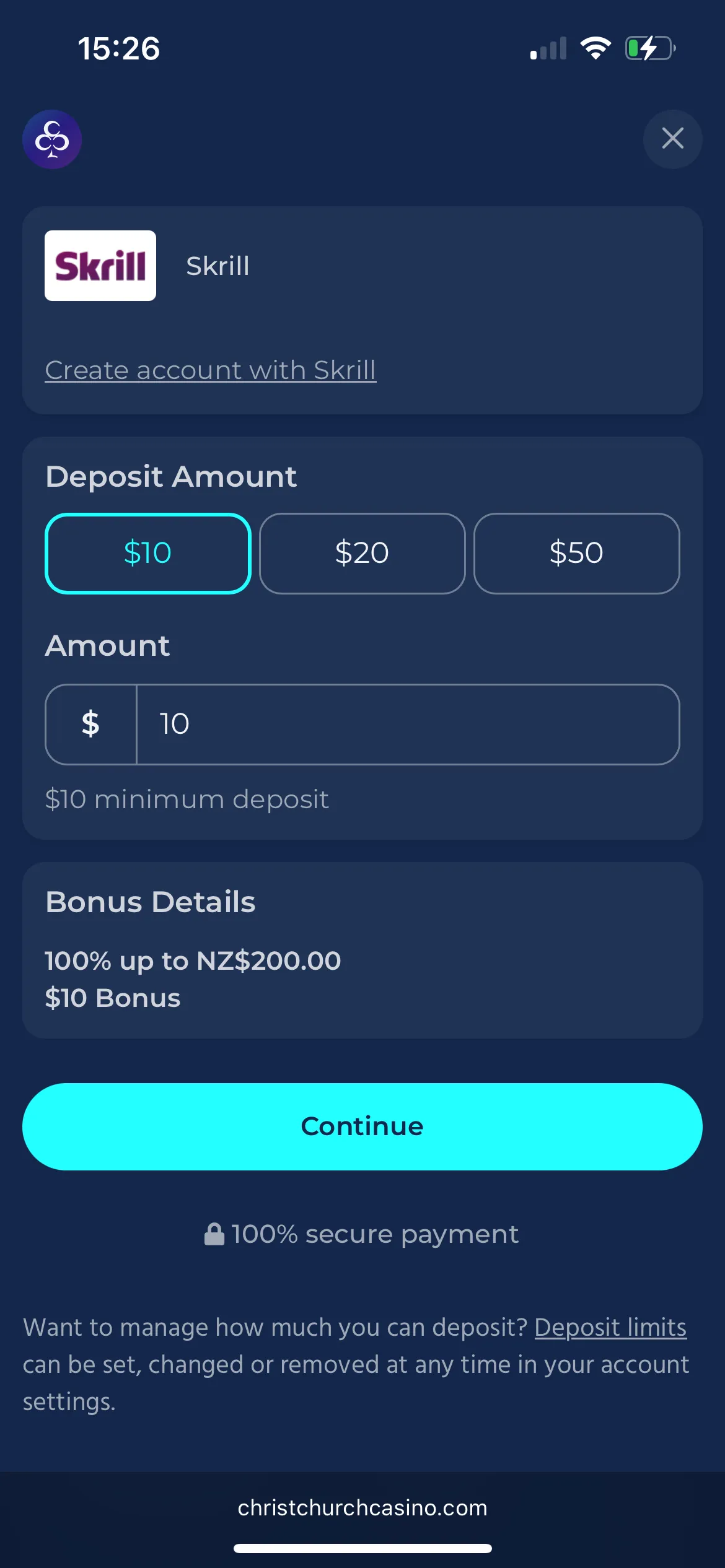 Creating a ChristChurch NZ login was pretty simple and fast. The deposit methods are fine, but lacking crypto. Anyway, I managed to make a deposit of 15 NZD via Skrill and was immediately given a welcome bonus – an extra 15 NZD with a wager of 30x. Not bad at all.