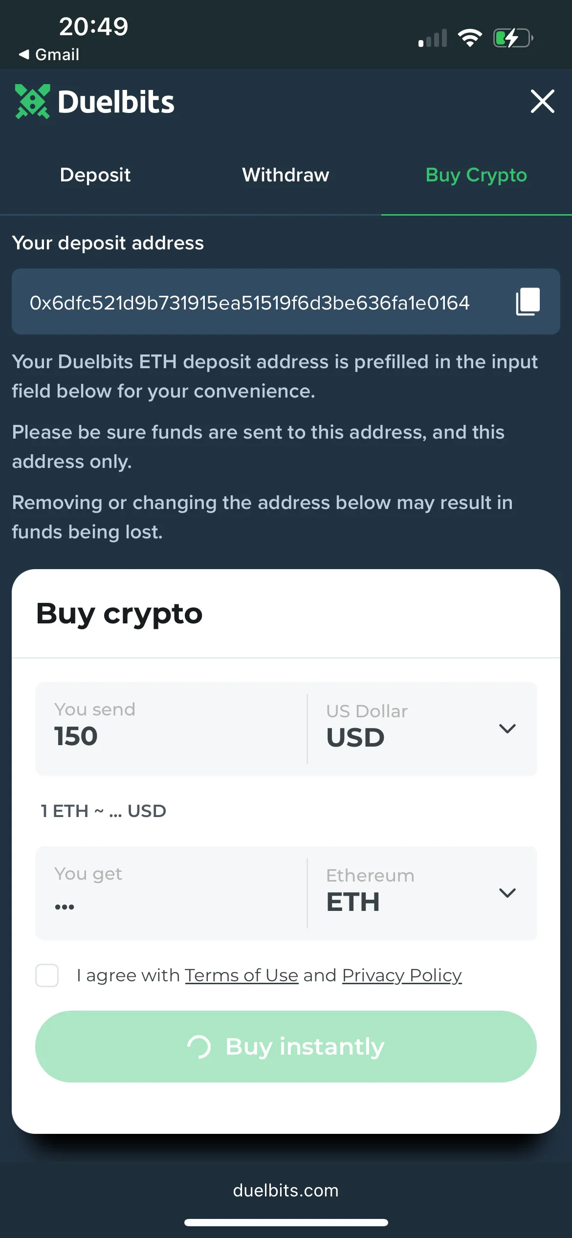 I managed to withdraw my winnings in USDT. I had to complete verification. I thought the withdrawal would be fast since this is a crypto casino; however, it took me 2 days to receive my winnings. I guess it happened due to the lengthy withdrawal process. I then read that all withdrawal reviews at Duelbits take from 24 to 48 hours.