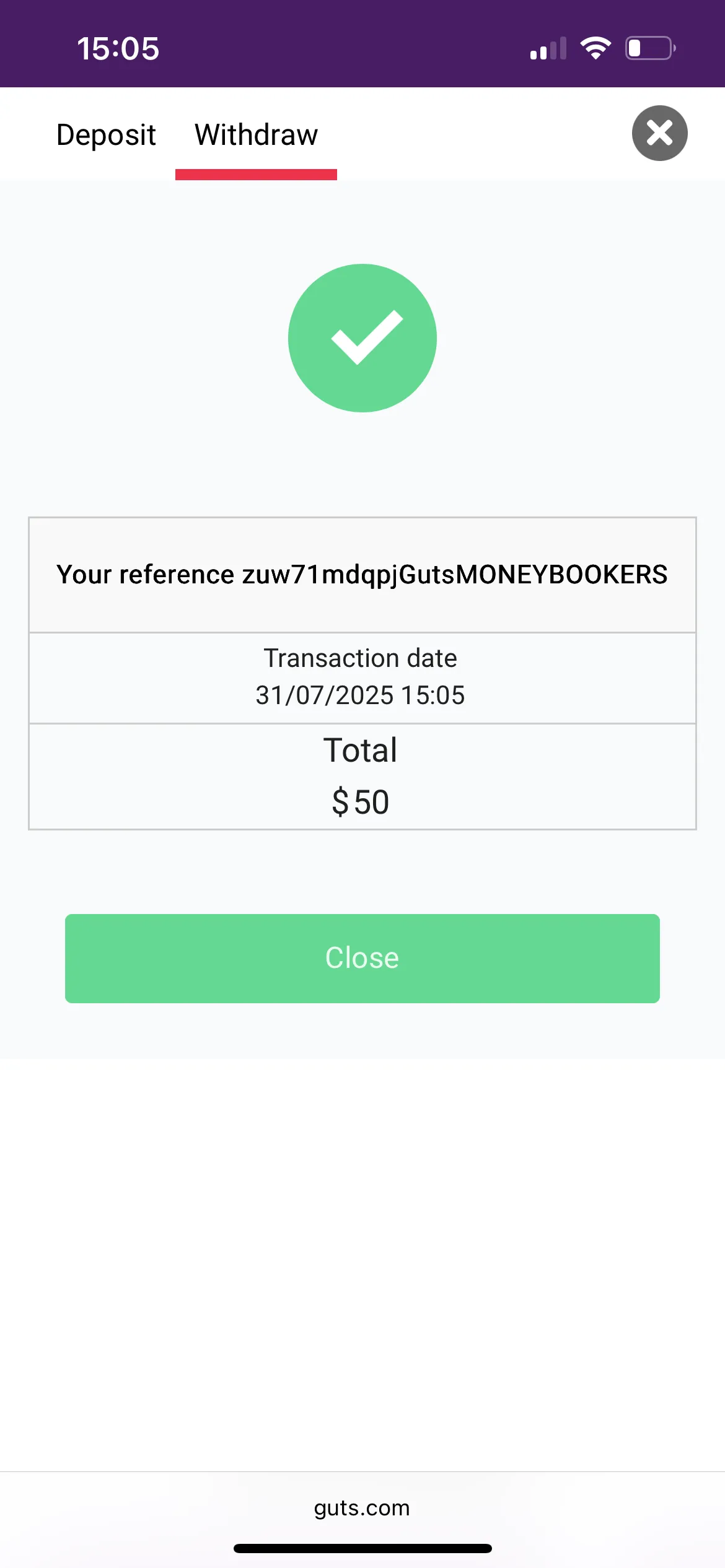 Guts Casino states that it processes withdrawals within 24 hours; however, according to players, the time can reach up to 48 hours.