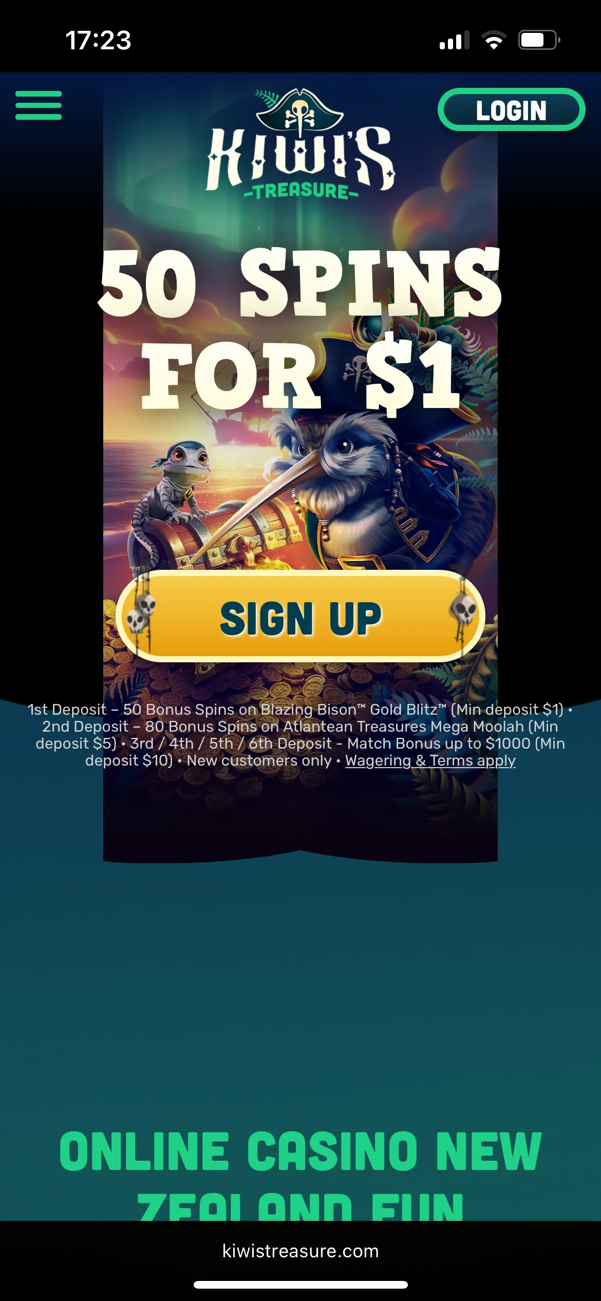 You don’t need a Kiwi’s Treasure bonus code to unlock the welcome pack.