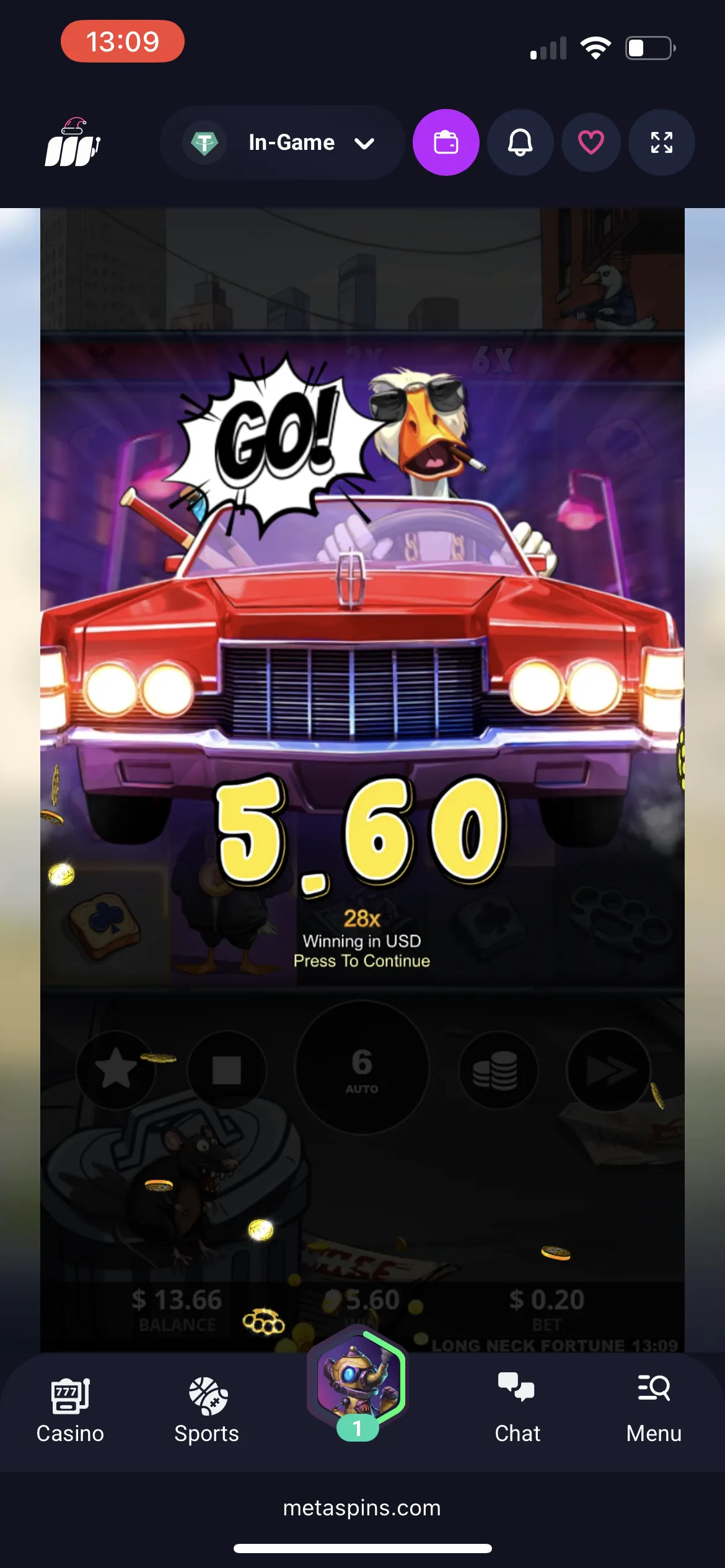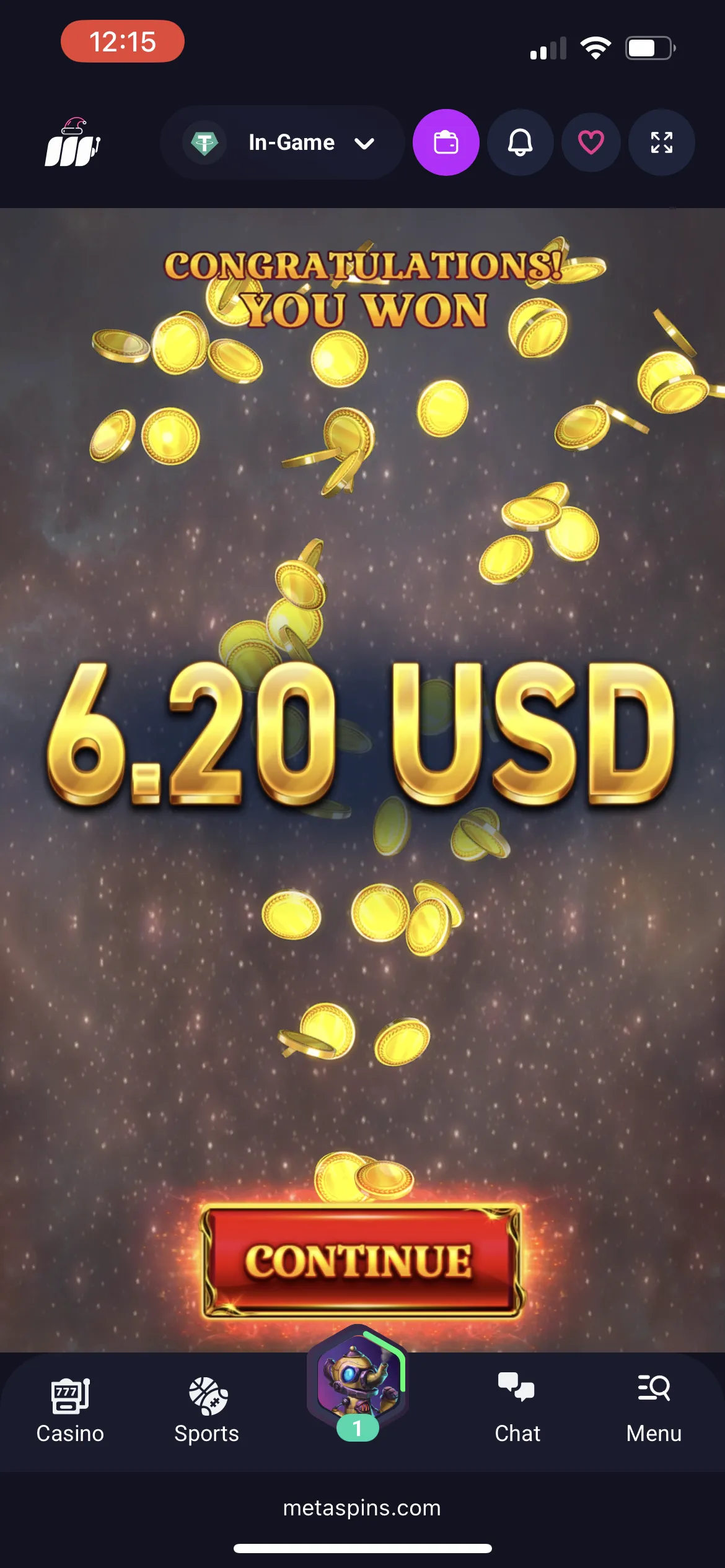 Metaspins Casino also offers a Rakeback reward, which is a small cashback. I got 0.05 USDT.