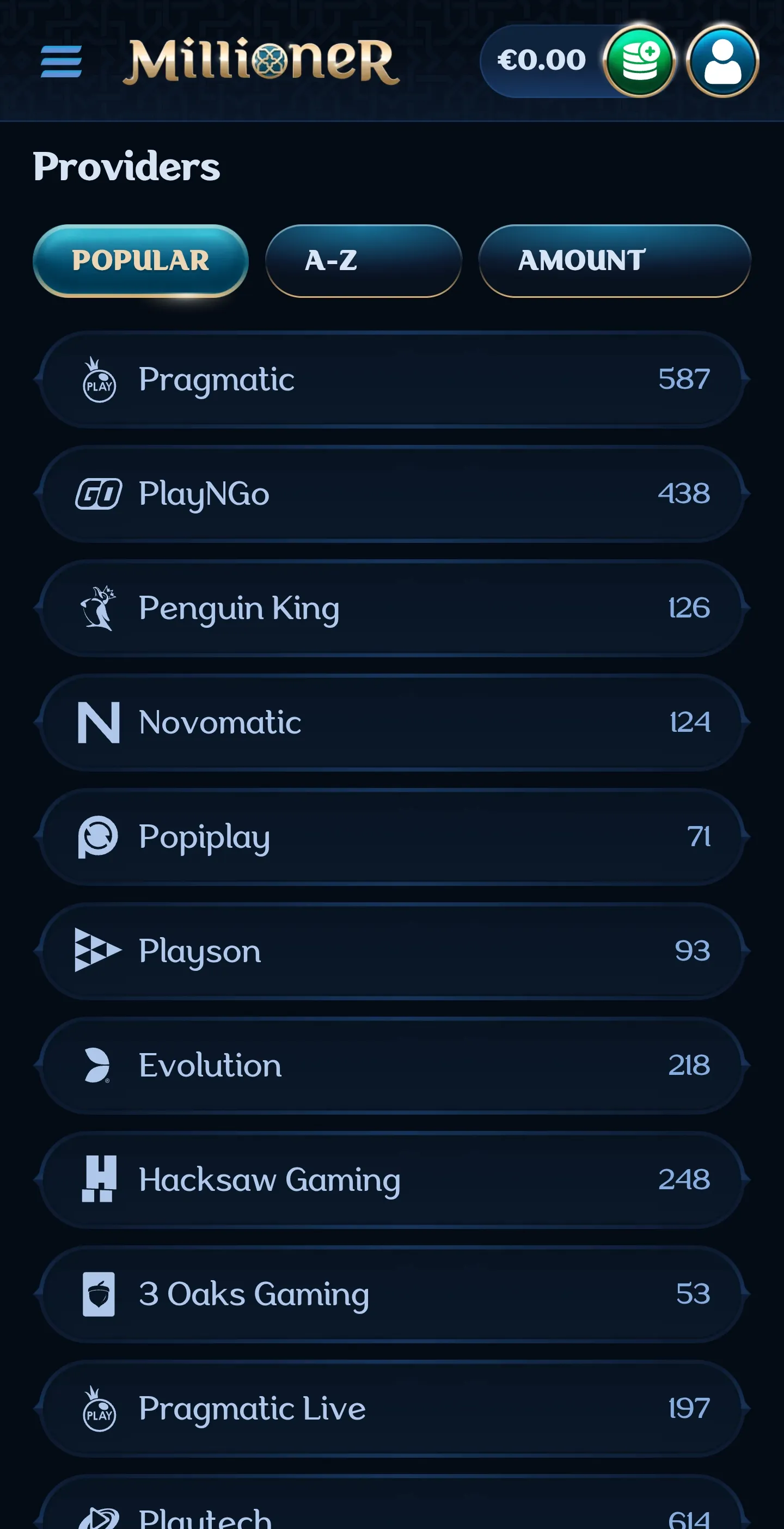 I spent a good amount of time browsing the game library and trying out a variety of slots, though. Millioner’s game lobby is impressively organized. You can browse by “Top”, “New”, or specific genres like Megaways, Bonus Buys, Live Casino, etc., or even filter by provider, which is something I always like to see.