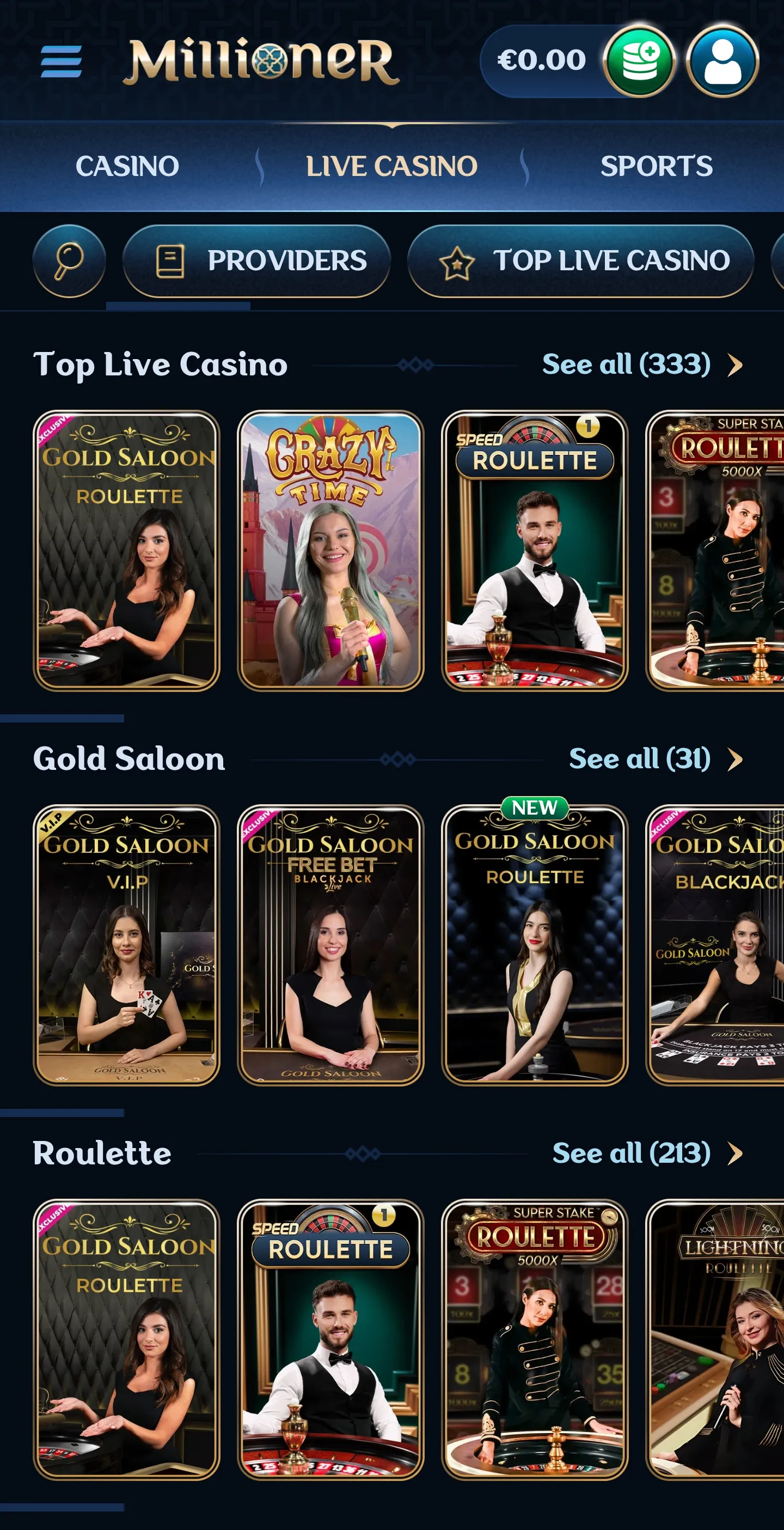 Millioner has a huge live dealer casino, and you’ll find live casino games from multiple live gaming providers. In the lobby I found live games from Evolution, Ezugi, Pragmatic Play, Lucky Streak, and some smaller studios.