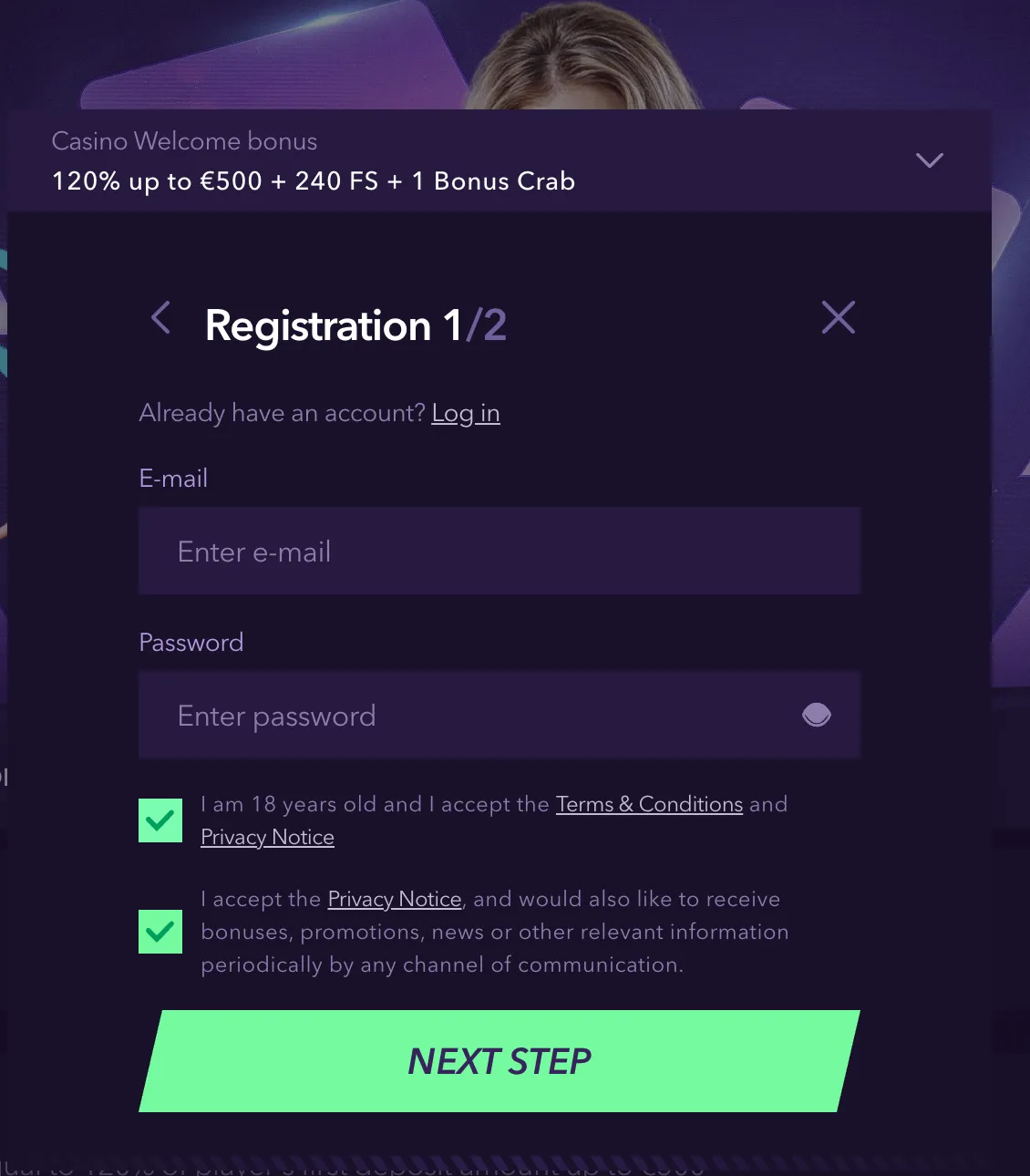 Registering at NaoBet Casino is straightforward and similar to other online casinos. First, there’s a popup where you can choose either the casino, or sports betting welcome bonus – or select “no bonus” if you don’t want one. Then, you’ll be prompted to enter your email address and password – and on the following screen you need to enter your personal details; name, address, date of birth, and so on.