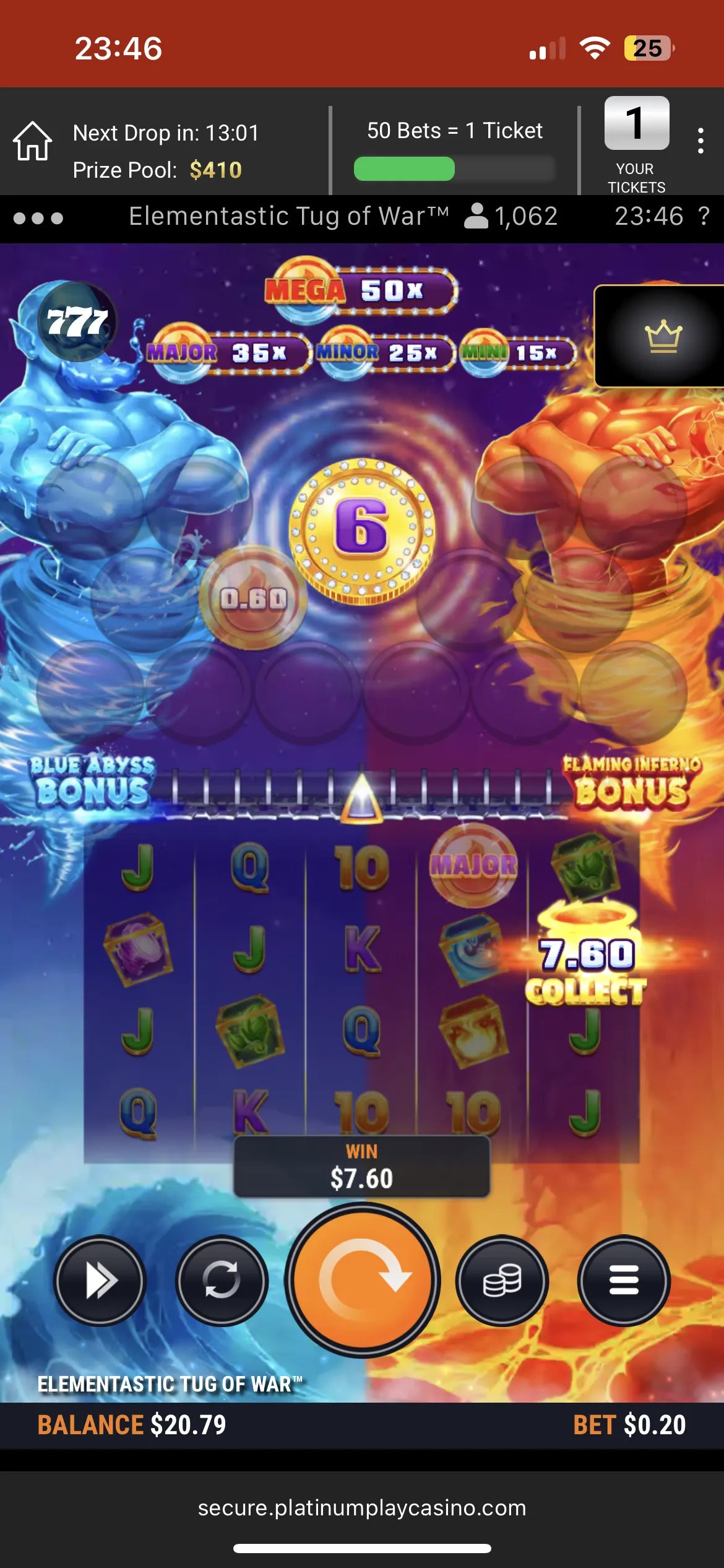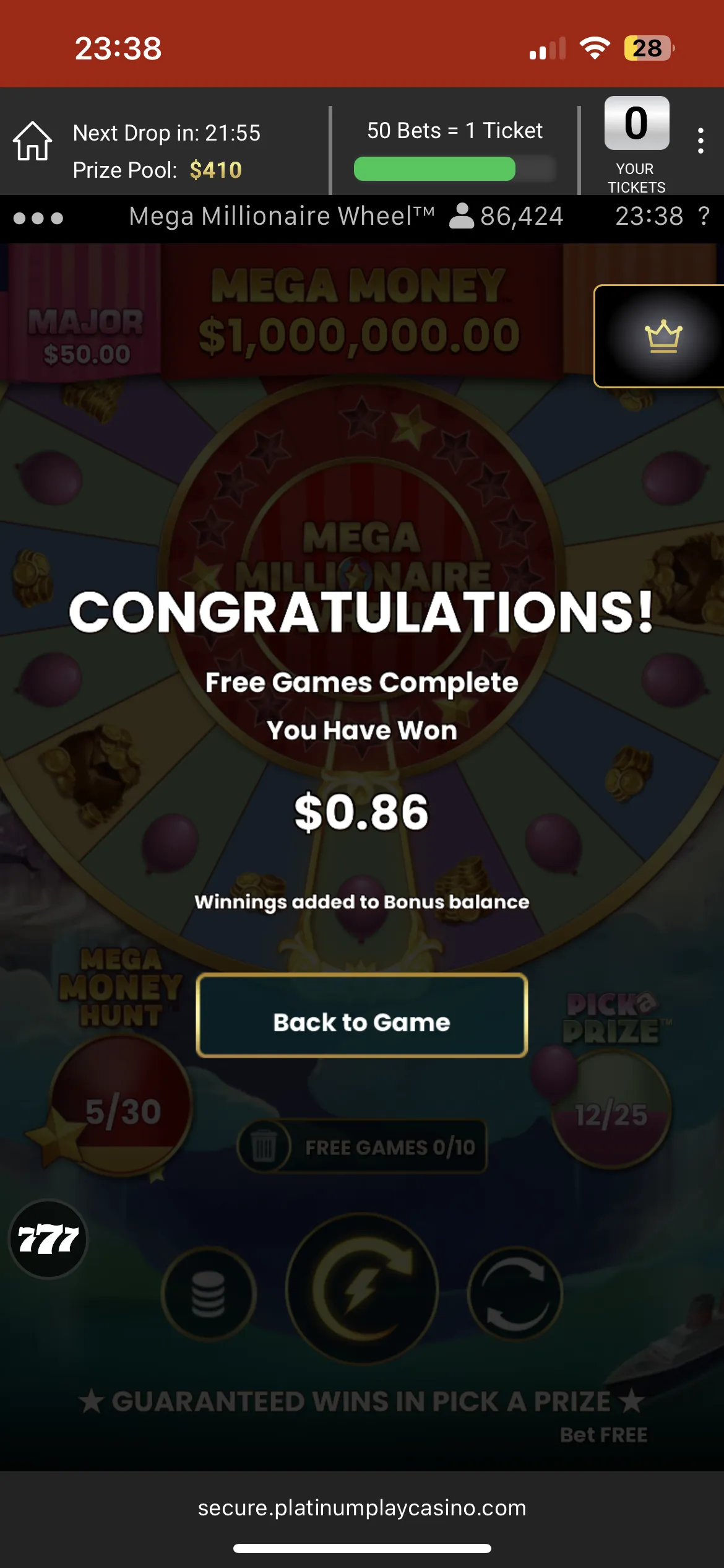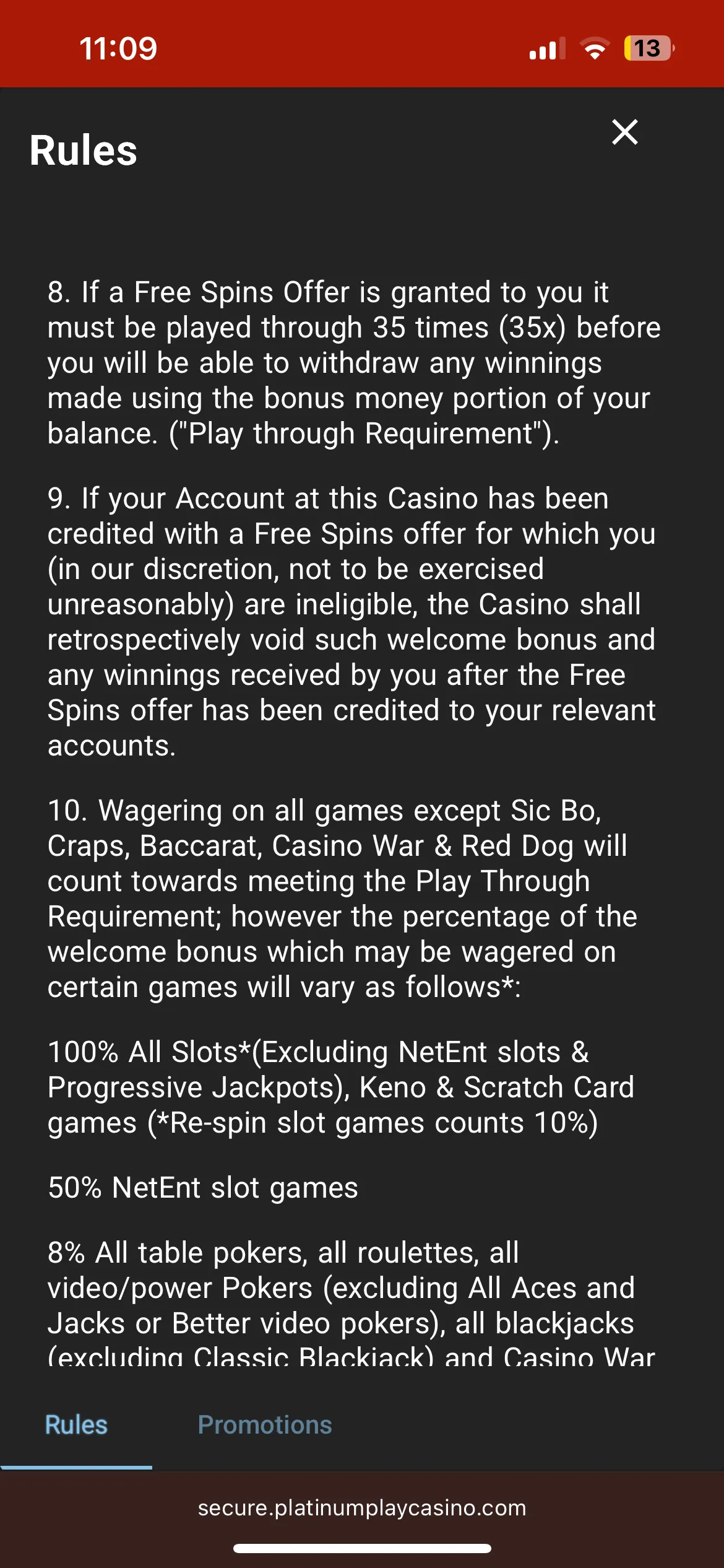 I tested the casino on my mobile, and it works pretty well. All pages, as well as games, load fast. If you want to have some fun on the go, Platinum Play won’t let you down.