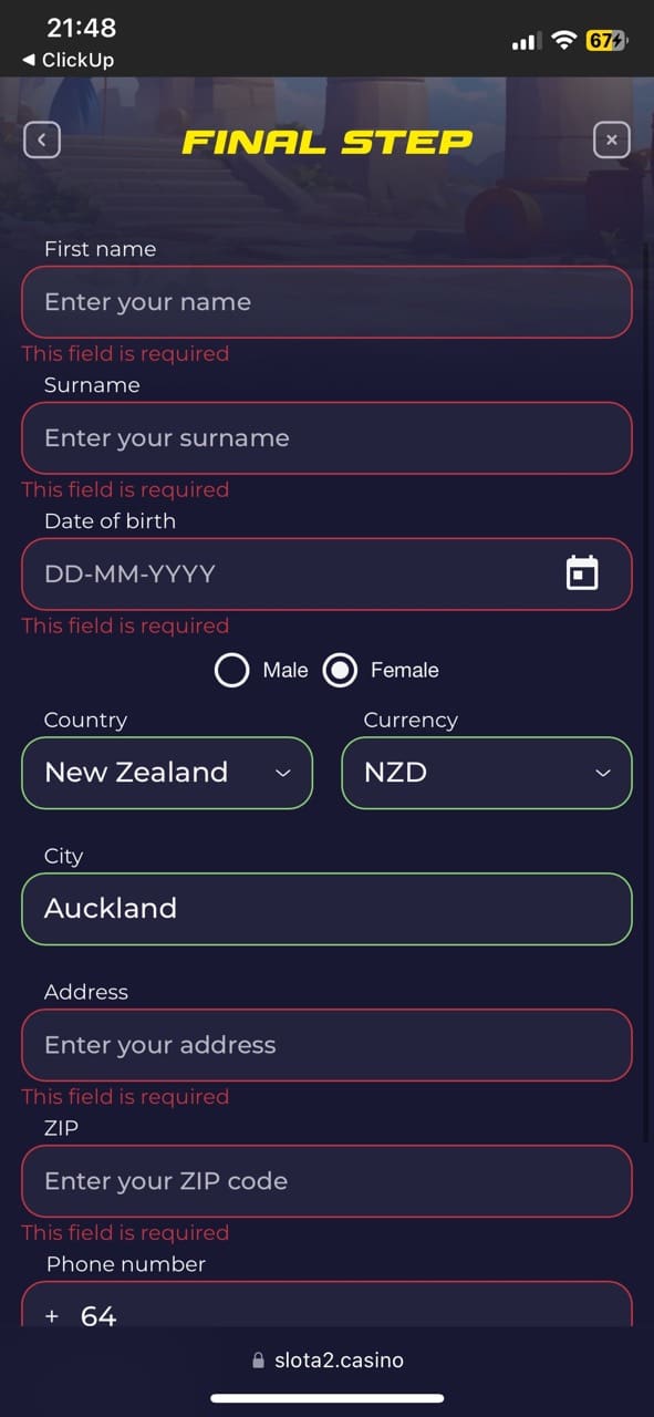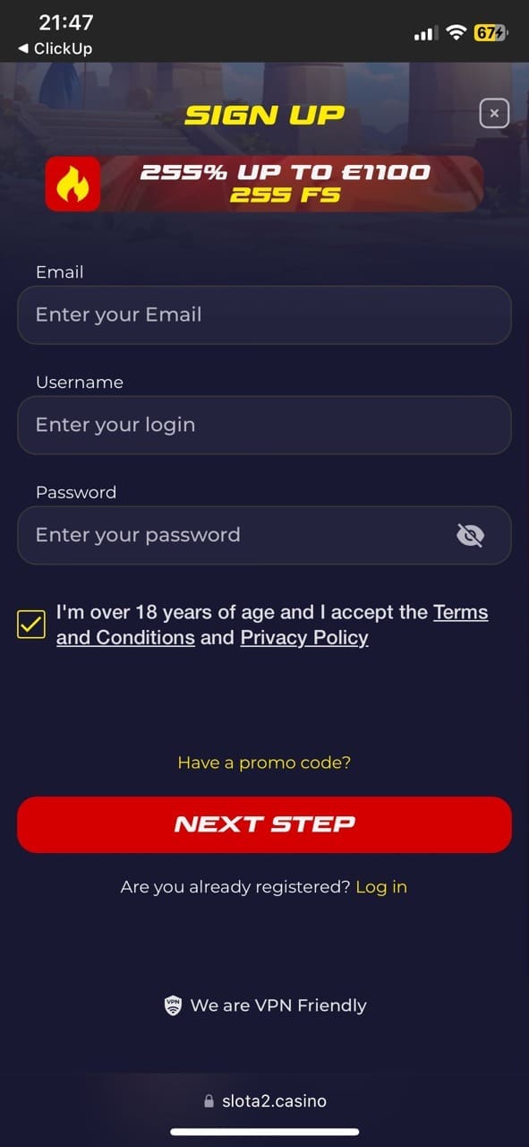 If you were impressed with what I shared and would also like to test out this gambling website, I would recommend starting with registration. Despite the fact that Slota provides quite a lot of info on its official website, you will not be able to claim promos, play for real NZD and cash out your well-deserved winnings.