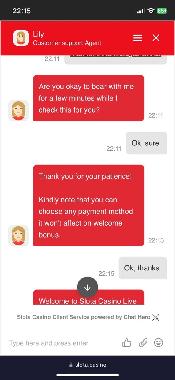 Customer Service at Slota Casino NZ