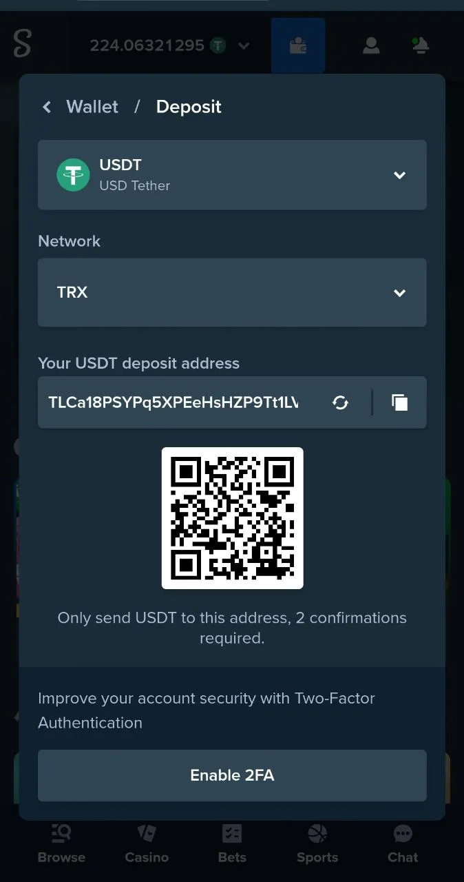 | Deposit options: | BTC Bitcoin, ETH Ethereum, LTC Litecoin, USDT Tether, SOL Solana, DOGE Dogecoin, BCH Bitcoin Cash, XRP Ripple, TRX Tron, EOS Eos, BNB Binance Coin, USDC USD Coin, APE Apecoin, BUSD Binance USD, CRO Cronos, DAI DAI, LINK Chainlink, SAND Sandbox, SHIB Shiba Inu, UNI Uniswap, POL Polygon, TRUMP Trump Coin |