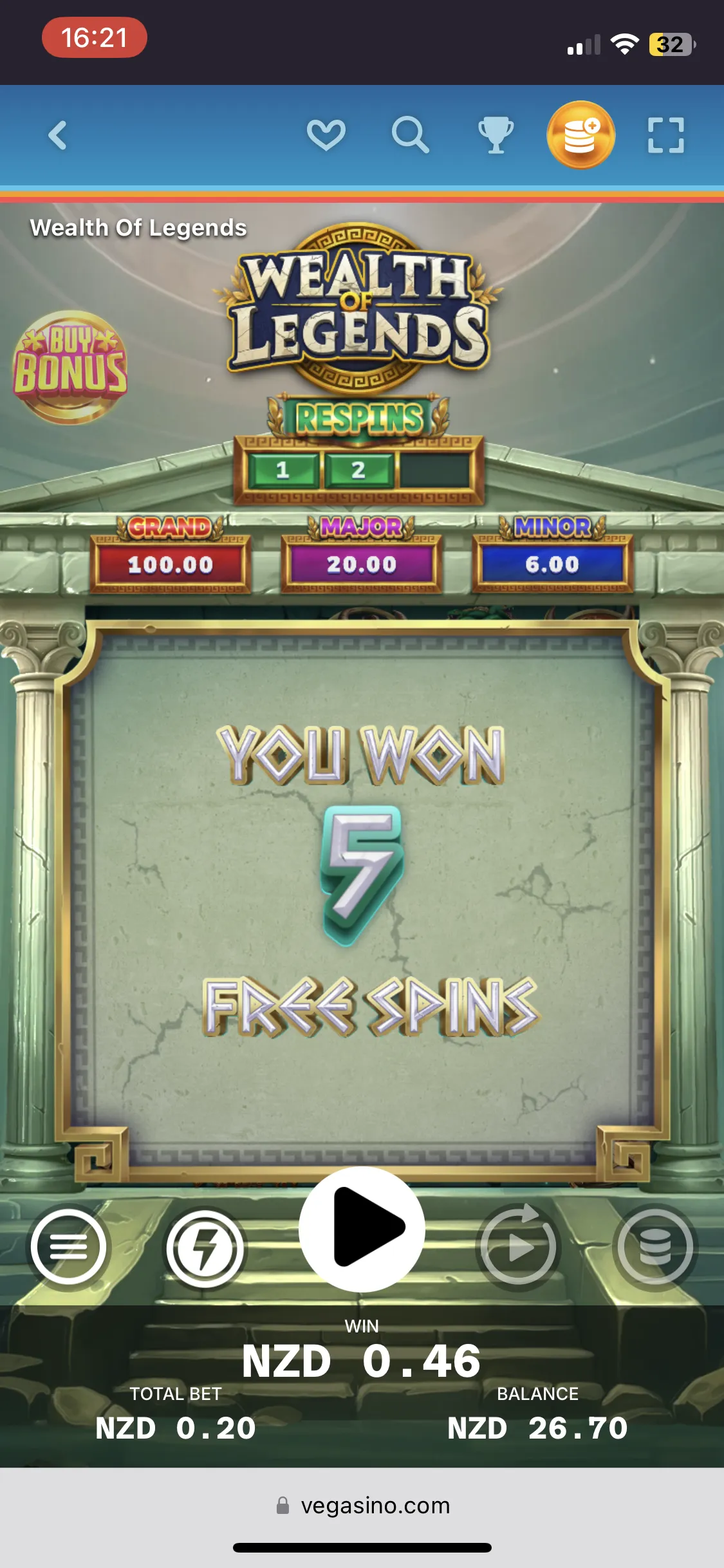 In the Wealth of Legends, I unlocked 5 free spins and won an insignificant sum. By playing Diamond Explosion 7s, I immediately won 5 free spins and then I got a huge win of 112.50 NZD. That’s choice! Then, by playing the bonus game, I was really lucky to drop extra 6 NZD in my account.